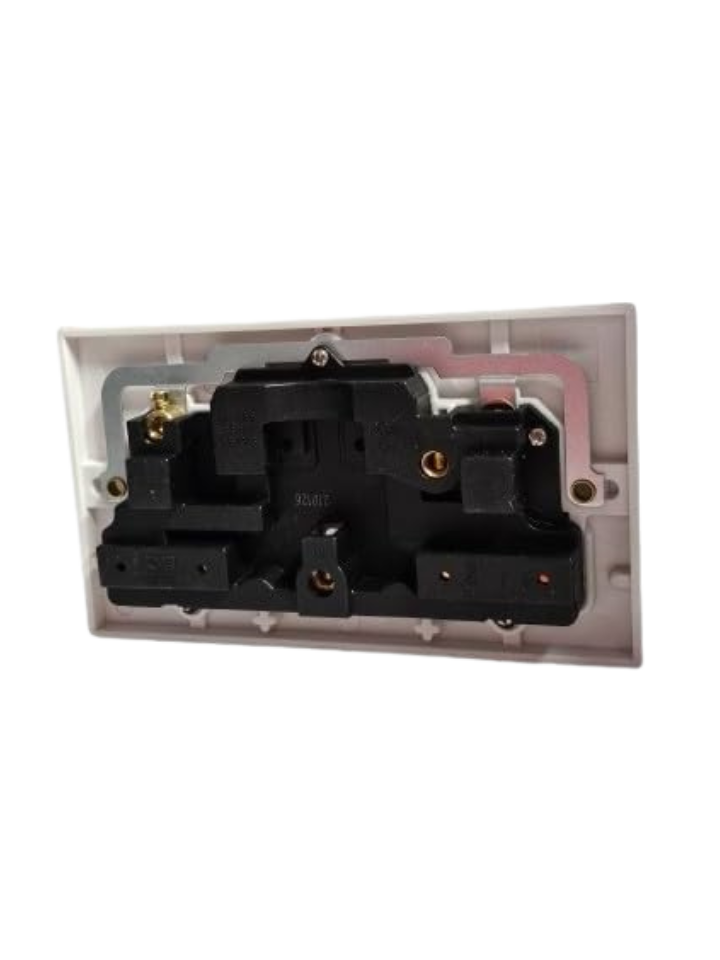 This versatile 2-gang switch and socket combination is perfect for rooms where you need both light control and a power outlet in a compact space, such as behind a TV unit or in a bedroom. Made from fire-retardant PC material, it ensures safety and durability. The clean, white finish and sleek profile make it a stylish and functional upgrade for any electrical system.