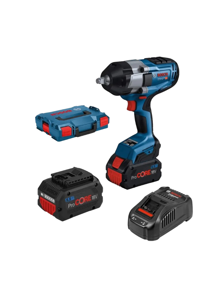 The Bosch GDS 18V-1000 Professional Impact Wrench sets a new benchmark for cordless power tools. Featuring an 18V Li-ion battery system and 1000 Nm of tightening torque, it handles industrial, automotive, and construction applications with ease. The brushless motor ensures efficiency, low heat generation, and long runtime. A 1/2-inch square drive provides compatibility with standard sockets, while the electronic brake and variable speed trigger give you total control for each application.